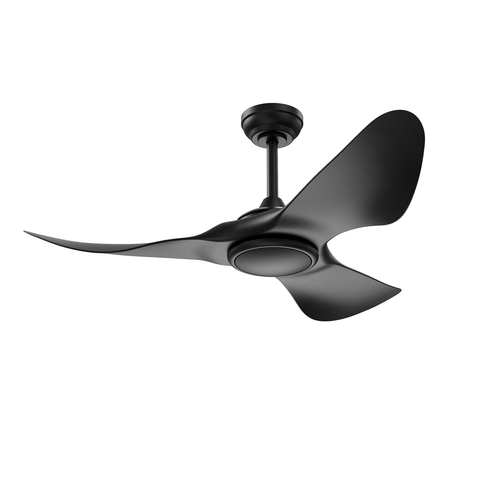 TEMPEST 52 in. 3 Blade DC Motor Ceiling Fan with Adjustable Color LED Light Kit in a Black finish with matching blades. The included Full-function Remote Control provides 6 Speeds, CCT (LED Color) Adjustability, LED Dimmer, Reverse Function, 1/4/8 Hour Timer to shut Fan off Automatically, and a Variable Wind feature which modulates Fan Speed to simulate a Natural Breeze.