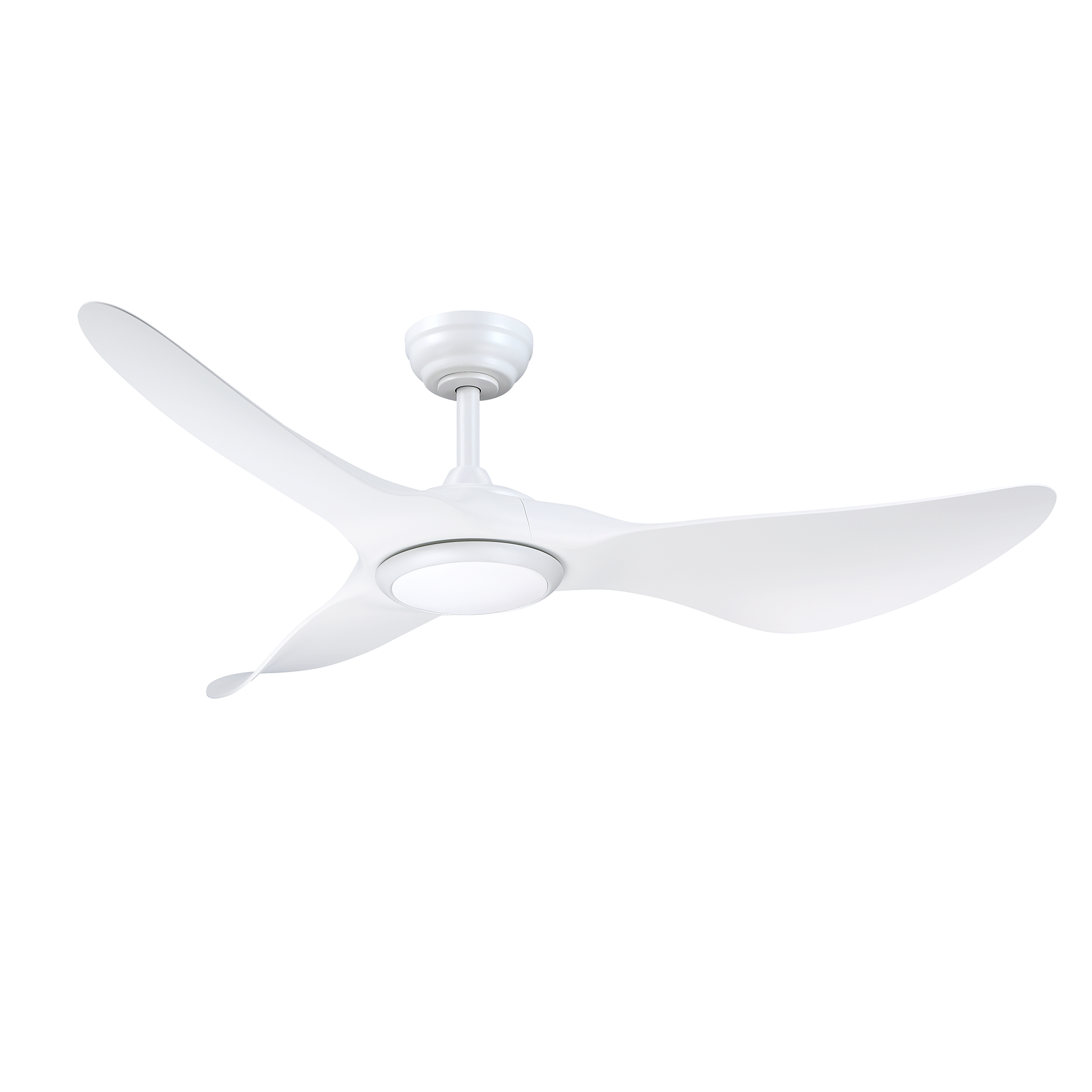 TEMPEST 52 in. 3 Blade DC Motor Ceiling Fan with Adjustable Color LED Light Kit in a Matte White finish with matching blades. The included Full-function Remote Control provides 6 Speeds, CCT (LED Color) Adjustability, LED Dimmer, Reverse Function, 1/4/8 Hour Timer to shut Fan off Automatically, and a Variable Wind feature which modulates Fan Speed to simulate a Natural Breeze.