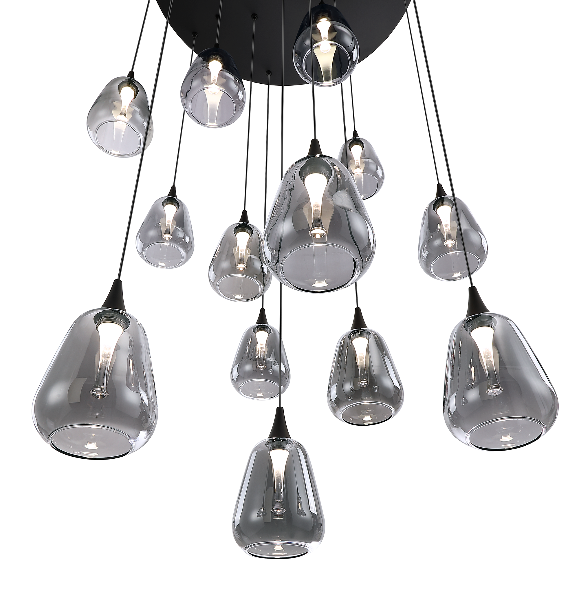 ORIANA 13-Light LED Pendant Pan in a Black finish with Smoke Glass Style “C”