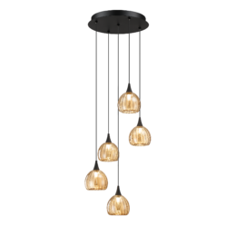 ORIANA 1-Light LED Pendant in a Black finish with Bronze Glass Style “A”