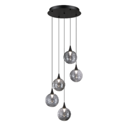 ORIANA 5-Light LED Pendant Pan in a Black finish with Bronze Glass Style “D”
